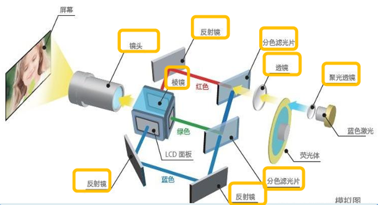 投影仪中有镜头、反射镜、遮光板、棱镜等很多玻璃构成产品都会运用到镀膜的工艺